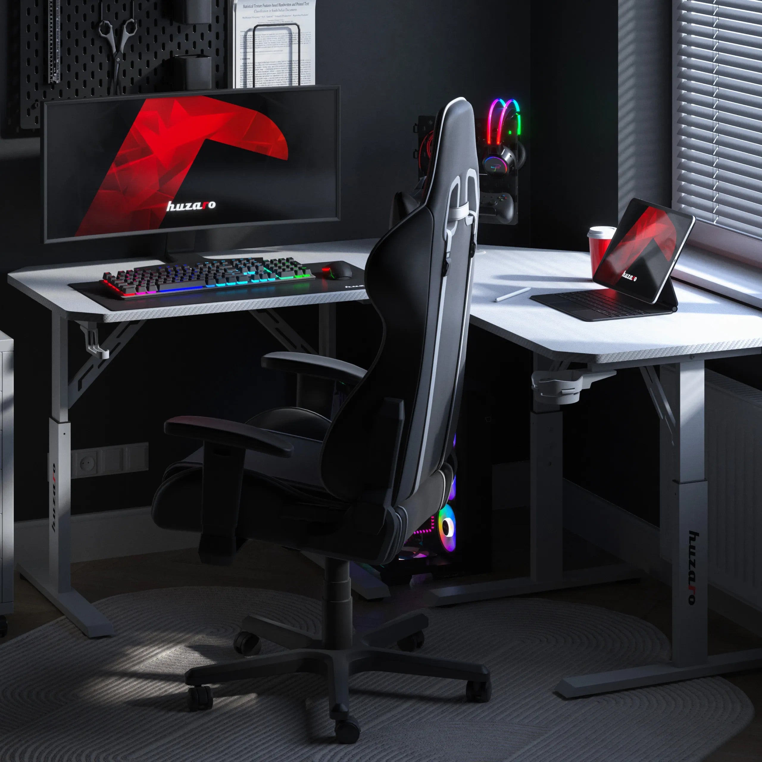 Biurko gamingowe narożne z regulacją wysokości Huzaro Hero 7.3 White Biurko gamingowe narożne z regulacją wysokości Huzaro Hero 7.3 White