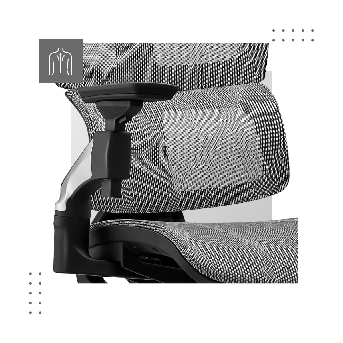 • Elastyczna podpora lędźwiowa pozwala dostosować fotel do kręgosłupa